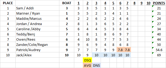 All sail 420’s tomorrow, then Friday is all FJ. After Fleet races we will do some Team Race drills and maybe a few games.