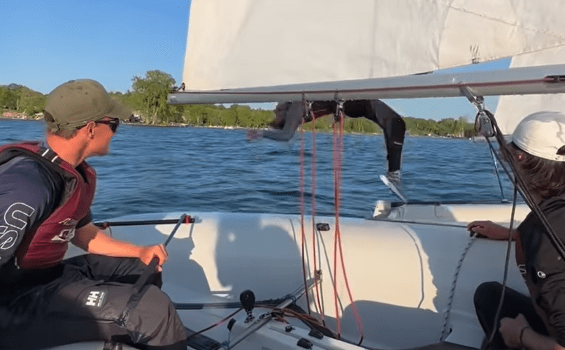 Crews: Focus on Jib Trim a) out of a tack, b) around a mark (windward, offset, and dw), c) off the wind, and d) down-speed at the start.