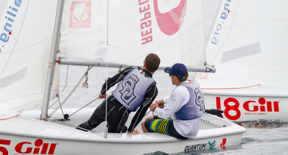 - too many crews sit in or up too early in breeze, or they come in or sit up to adjust jib trim. When there’s wind, the default is to hike (see photo)